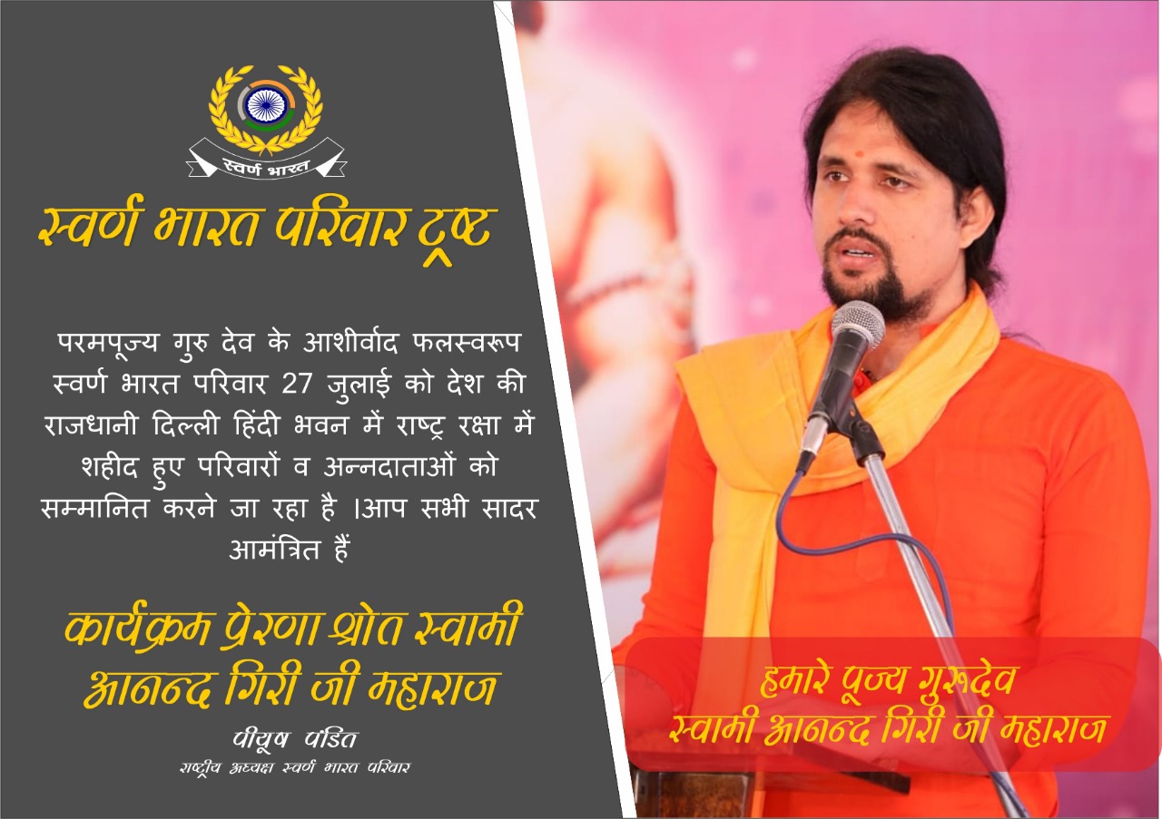 Swarna Bharat Parivaar is going to honor the heroic soldiers who understand the country's duty as their first duty and have the courage to die for the country and these tradition of Social Care is going to be honored.